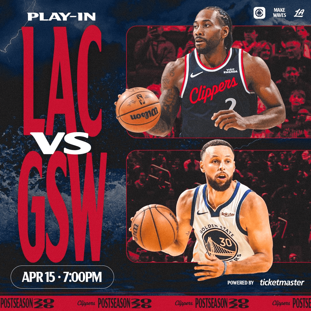 虎扑04月13日讯 今日NBA常规赛结束,西部附加赛首轮确定:快船将在主场对阵勇士。板快
